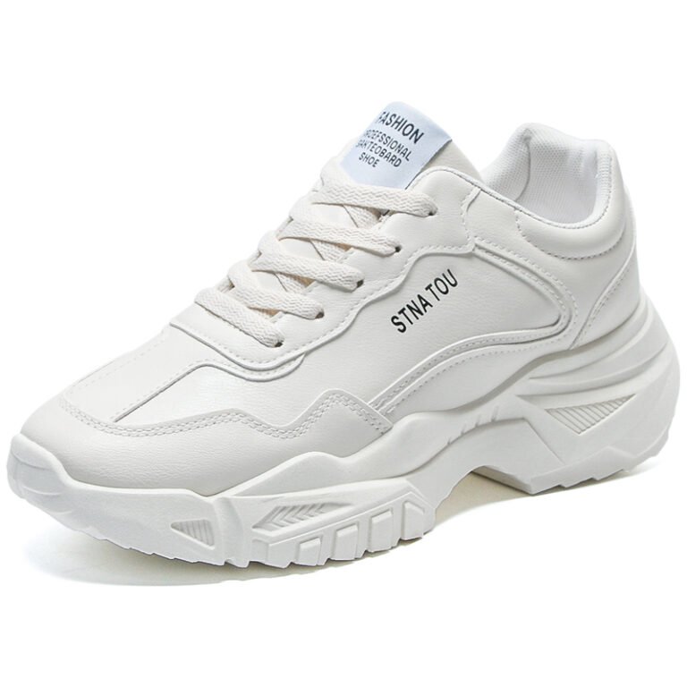 Casual Leather Sneakers Thick Sole Sneakers Fashion Outdoor Shoes Non-slip Low Top-dce97