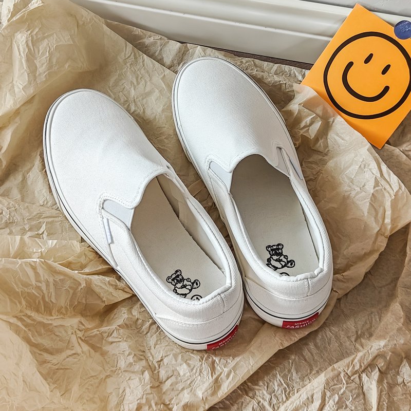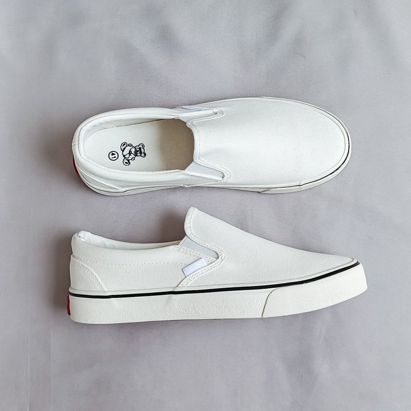 These slip-on white canvas shoes combine simplicity, comfort, and versatility. With their timeless design and easy-wear functionality, they are the perfect addition to your everyday essentials.