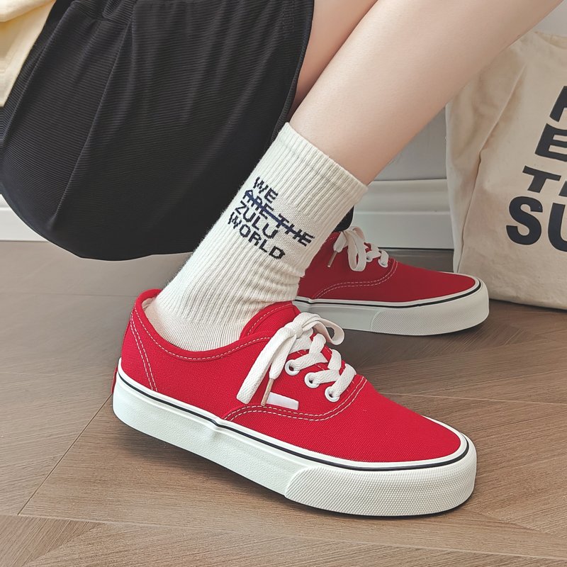 These classic red canvas shoes combine minimalist design with high-quality craftsmanship, making them the perfect go-to choice for everyday wear. The upper is crafted from premium canvas material, offering breathability and lightweight comfort for extended wear. The classic lace-up design is accented . The outsole is made from durable, anti-slip rubber, providing excellent traction and stability for worry-free walking. The soft, comfortable lining conforms to your feet, ensuring a lightweight and relaxed wearing experience. Whether for casual outings, campus style, or daily commutes, these canvas shoes pair effortlessly with any outfit, delivering timeless style with ease.