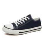 This classic blue low-top canvas shoe is crafted with premium canvas material, offering lightweight breathability for all-day comfort. The durable rubber sole provides excellent grip and wear resistance, making it suitable for various occasions. Its minimalist design, featuring white laces and a rubber toe cap, adds a touch of style and pairs effortlessly with jeans, shorts, or casual skirts. Combining aesthetics and practicality, this pair is the perfect choice for daily wear, travel, or casual activities, giving your steps confidence and energy!
