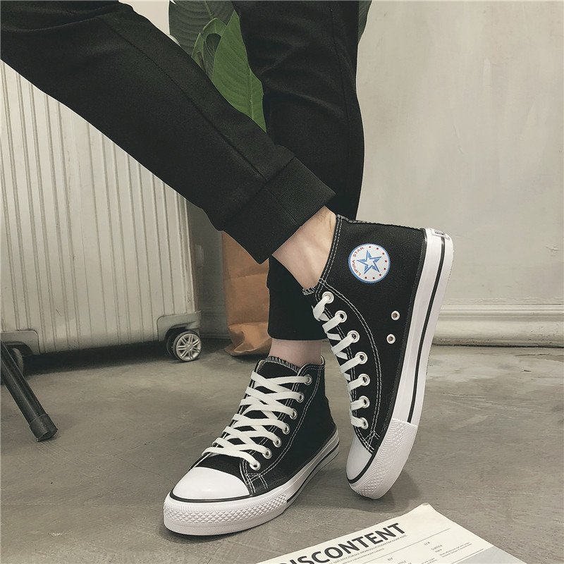 This classic black high-top canvas shoe features a simple and elegant design, making it a versatile choice for everyday wear. The upper is made of high-quality canvas material, offering breathability and durability for all-day comfort. The non-slip rubber sole enhances grip, ensuring walking safety. The timeless black-and-white color combination is stylish yet understated, suitable for various occasions, including campus life, casual outings, or daily commuting. The reinforced toe design improves durability, while the white laces add a touch of brightness to the overall look. This unisex shoe is an ideal choice for those seeking both comfort and style.