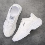 These all-white sneakers combine simplicity and style, featuring a chunky sole that adds a trendy touch while providing excellent support. Perfect for everyday wear or casual activities, the upper is made of high-quality synthetic leather that is durable, easy to clean, and breathable for all-day comfort. The sleek, minimalist design makes it an ideal choice for those who value both fashion and functionality.