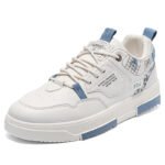 These trendy casual sneakers feature a classic white base accented with refreshing blue panels and geometric line details, delivering a modern and stylish design. Crafted with premium synthetic leather, the upper is soft, breathable, and easy to maintain. Paired with a durable, anti-slip rubber outsole, these shoes ensure confident strides and all-day comfort for any occasion.