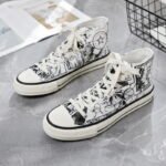 These high-top canvas shoes feature a unique black-and-white anime pattern design, full of creativity and personality, perfectly showcasing the bold fashion attitude of young people. The upper is made of high-quality canvas material, which is breathable and durable, paired with a soft and comfortable insole for an all-day cozy wearing experience. The classic high-top style not only flatters the leg shape but also adds a distinctive trendy element to your outfit. Whether it’s street style, casual wear, or daily outings, these shoes are easy to pair with. More than just a pair of shoes, they are a combination of individuality and art. A must-have for anime and fashion enthusiasts!