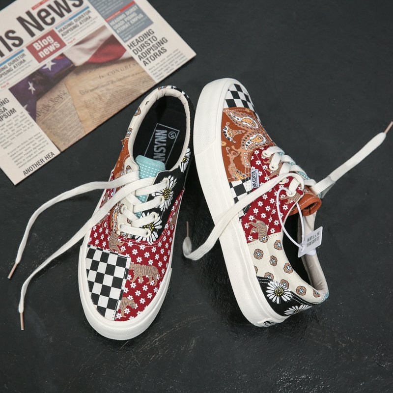 These stylish casual sneakers feature a unique patchwork design that combines the classic black-and-white checkerboard pattern with vintage Bohemian floral prints, creating a one-of-a-kind, standout look. Made from high-quality canvas material, they are breathable and lightweight, ensuring all-day comfort without any pressure. The anti-slip, wear-resistant rubber sole provides excellent grip and durability, making them ideal for daily outings, street style, and campus life. Whether you are a trend-conscious youth or a fan of retro fashion, these sneakers are a must-have addition to your wardrobe!