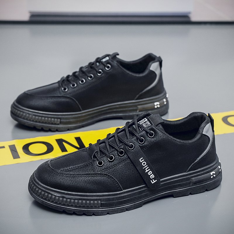 Step into style and comfort with these sleek, all-black sneakers, designed for the modern trendsetter. Crafted with high-quality materials, these shoes feature a durable anti-slip outsole for stability and confidence in every step. The breathable upper ensures long-lasting comfort, making them perfect for daily wear, work, or outdoor activities. Combining a minimalist design with subtle fashion elements like the “Fashion” side strap, these sneakers effortlessly complement casual, business-casual, and streetwear looks. Elevate your footwear game with these versatile and stylish sneakers – your ultimate go-to pair for comfort and durability!