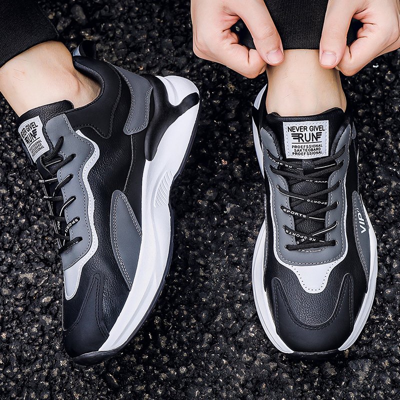 These sneakers feature a classic black and gray color combination, exuding understated luxury with a sleek, modern design. The upper is crafted from high-quality synthetic leather, offering durability, comfort, and easy maintenance, making it ideal for everyday wear. The lightweight sole provides exceptional cushioning and grip, making these shoes a perfect choice for commuting, outings, or casual styling.