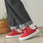 These red sporty canvas shoes perfectly blend energy and style, designed for those who value fashion and comfort. The upper combines premium suede and mesh materials, offering a soft touch and breathable comfort for all-day wear. The vibrant red color paired with wide laces adds a bold, standout look, ensuring you make a statement wherever you go. The anti-slip, wear-resistant rubber sole provides excellent traction and stability, making them suitable for casual outings, workouts, or streetwear styling. Whether paired with jeans, sportswear, or trendy street fashion, these canvas shoes are the perfect highlight for your outfit.