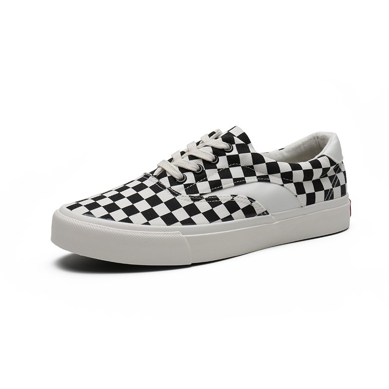 New Lattice Color Matching Design Custom Vulcanized Lace up Flat Casual Sneakers Canvas Men Women Shoes-vt18