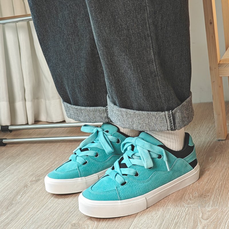 These blue sporty canvas shoes perfectly blend energy and style, designed for those who value fashion and comfort. The upper combines premium suede and mesh materials, offering a soft touch and breathable comfort for all-day wear. The vibrant red color paired with wide laces adds a bold, standout look, ensuring you make a statement wherever you go. The anti-slip, wear-resistant rubber sole provides excellent traction and stability, making them suitable for casual outings, workouts, or streetwear styling. Whether paired with jeans, sportswear, or trendy street fashion, these canvas shoes are the perfect highlight for your outfit.
