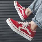 - Vibrant Red, Eye-Catching Design: The bold red upper paired with clean white stripes creates a striking look, perfect for standing out in any crowd.