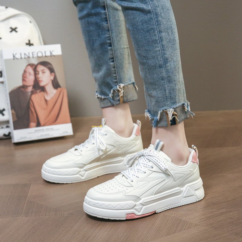 These trendy chunky sneakers feature a fresh all-white design accented with soft pink details, perfectly blending simplicity with elegance. Crafted from premium synthetic leather, the upper is smooth, breathable, and durable, ensuring long-lasting comfort for daily wear. The thick cushioned sole provides excellent support and a lightweight feel, making them ideal for commuting, casual outings, or trendy streetwear. Step into confidence and style for any occasion.