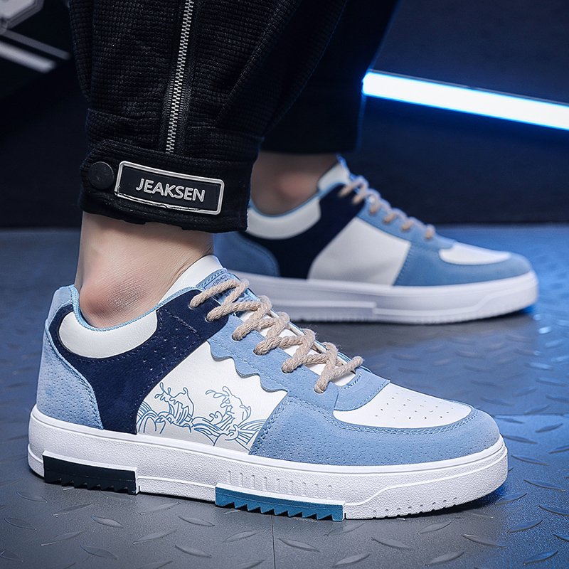 These stylish casual sneakers feature a striking blue and white color combination, blending modern trends with ultimate comfort. The upper is crafted from premium suede and leather materials, complemented by intricate textured details and unique printed patterns, showcasing your individuality. Lightweight and breathable, these shoes are perfect for street style or everyday wear, making you stand out effortlessly.